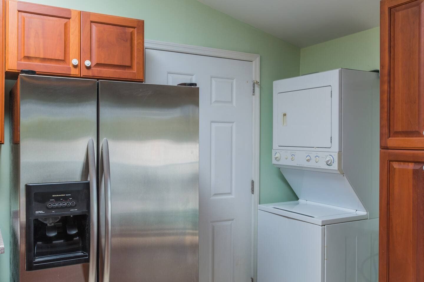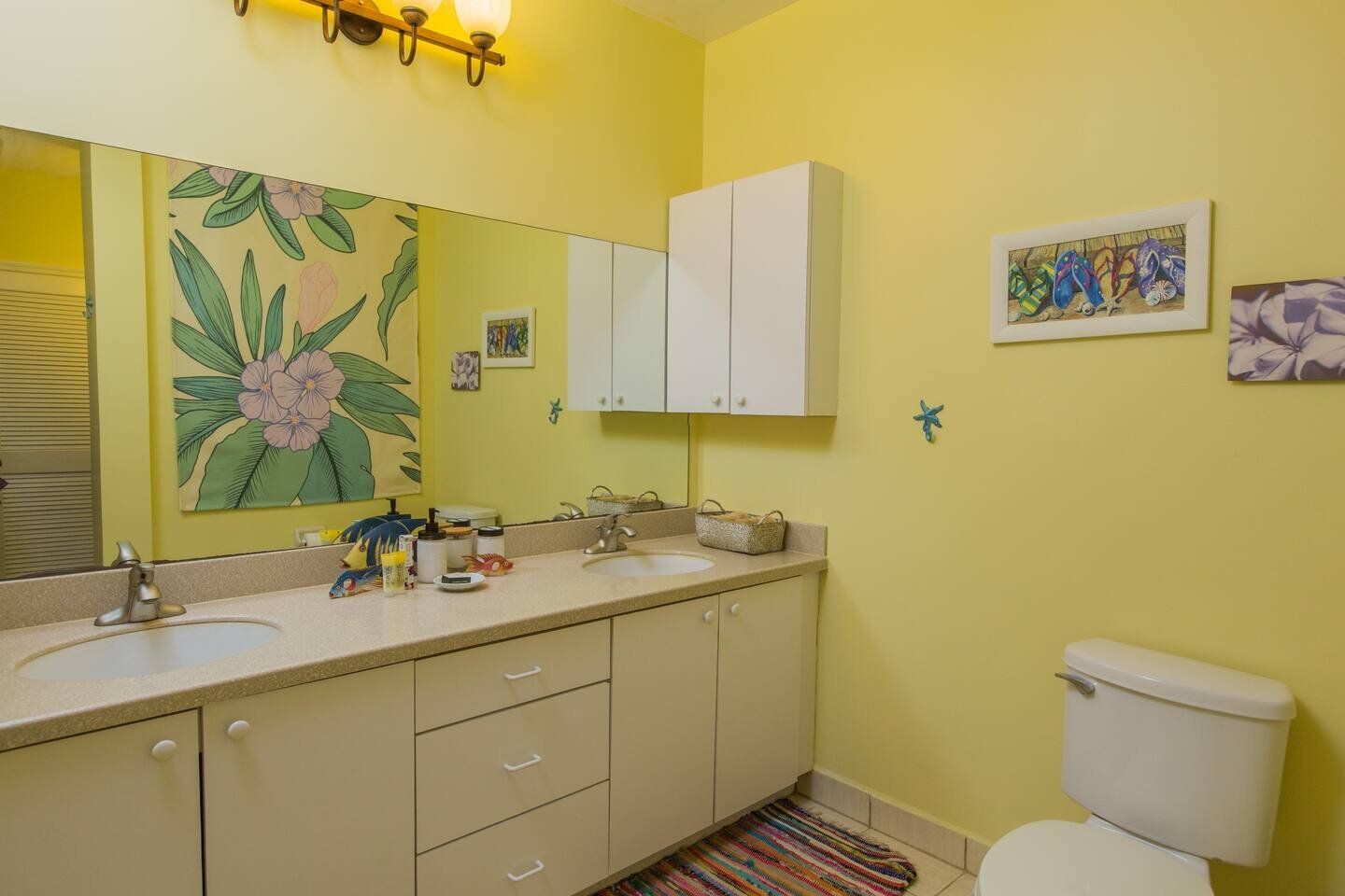 The floorplan features an expansive great room design that integrates the living, eating & kitchen areas to facilitate conversation and entertaining. The furniture is casual & comfortable and includes a large (queen size) sofa-bed for extra sleeping accommodation. The full-height glass doors to the private balcony bring the ocean view and picturesque sunsets right into the great room. The full kitchen has everything necessary for easy meal preparation or serving to generate Caribbean Vacation memories, including an eat-in counter with bar-stool seating and a full complement of appliances, even an ice maker & dispenser, as well as a handy washer/dryer tucked in the corner. The spacious master bedroom provides easy access to the generous bathroom which includes double sinks and a walk-in shower.