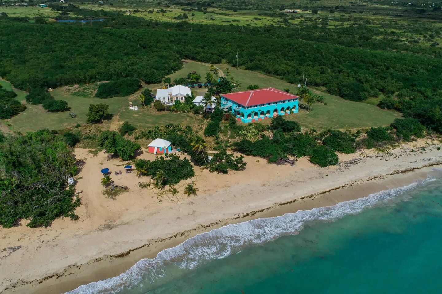 Hummingbird Beach Hideaway sits on a 10-acre estate located on the south shore of St. Croix in the U.S. Virgin Islands. The estate property features over 500 feet of beach frontage on a mile of undeveloped, uninhabited, & usually deserted sandy beach. The main Villa of the five-building compound has been newly refurbished into an intimate Beachfront Boutique Hotel, the second floor of which features six beautifully finished & individually decorated residences, four 1bdrm Suites & two Studios.