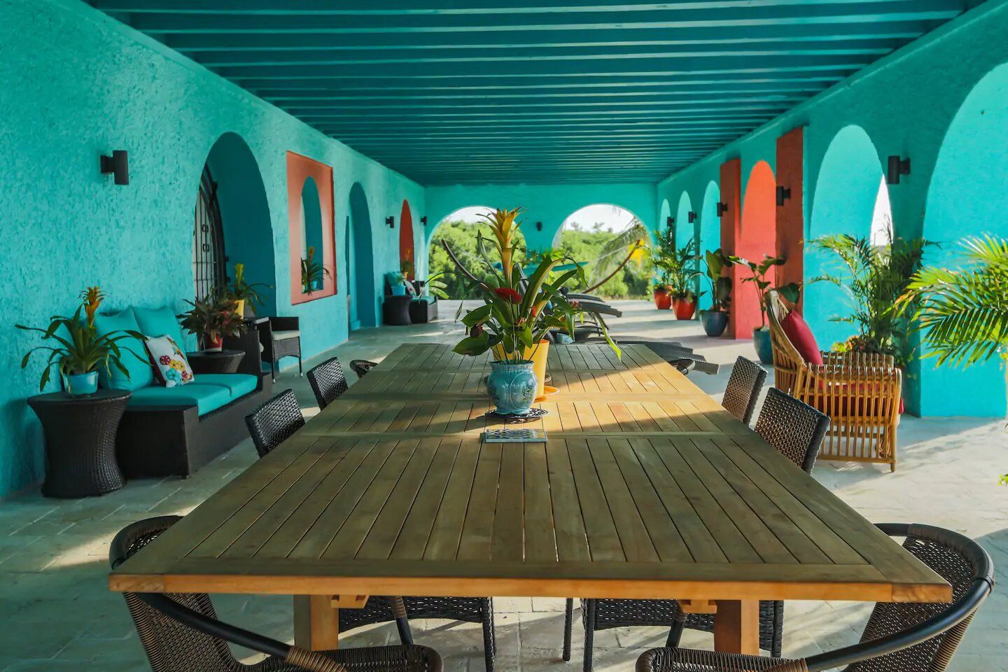 All the guests at Hummingbird Beach Hideaway share the use of the huge, gracious Veranda that runs all along the Oceanside of the ground floor of the Villa. This inviting and relaxing 1,600+ sq foot gathering space offers both cool shade and a continuous trade winds breeze while affording an expansive view of the entire beach and the steady soothing sound of the surf on the sand.